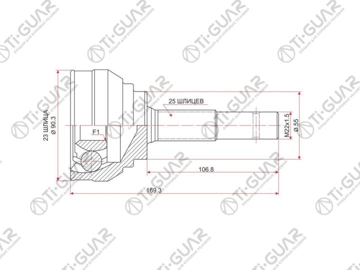 ШРУС наружный /TI-GUAR для NISSAN AD Y11, WINGROAD Y10 1990-1996, SUNNYGA16DE , PULSAR B13 14 /23*55*25; TG-7417; 0210017 320124 391000M311 391000M600 NI017