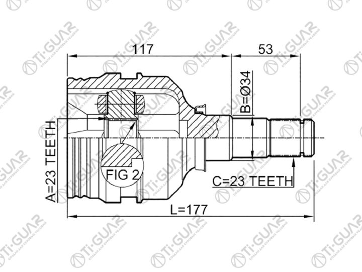 ШРУС внутренний /TI-GUAR для Toyota Auris Avensis Corolla 2009- ZZE ZRE12# 15# ZZT220 ZZT250 /23*34*23; TG-IN9510; (CI3718 0111-ZZE120) 4304002030 4304005060